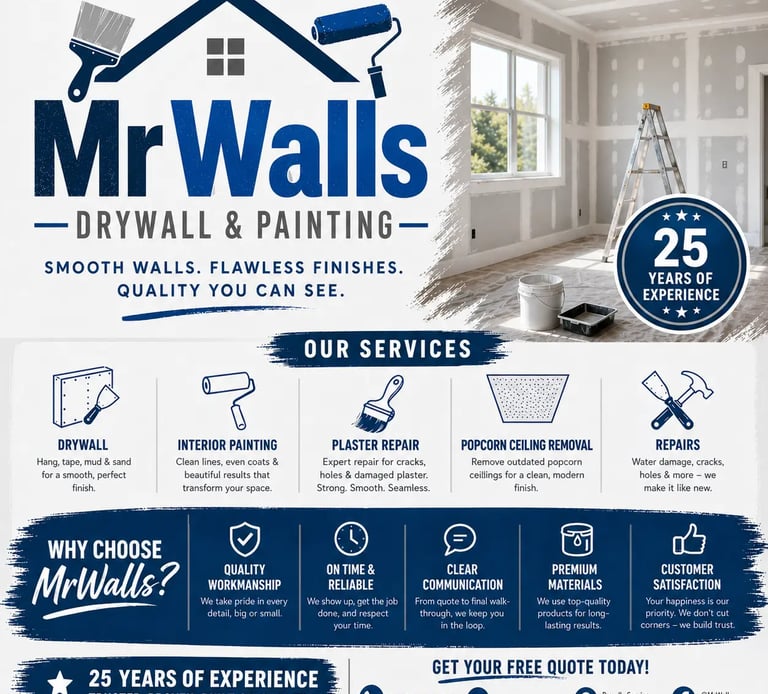 Granville is a Hilltown in the Berkshire foothills, small, rural, and full of homes that have been on the same land for generations. MrWalls Drywall & Painting provides drywall repair in Granville MA for homeowners who want wall and ceiling repairs done correctly, not patched over and forgotten.